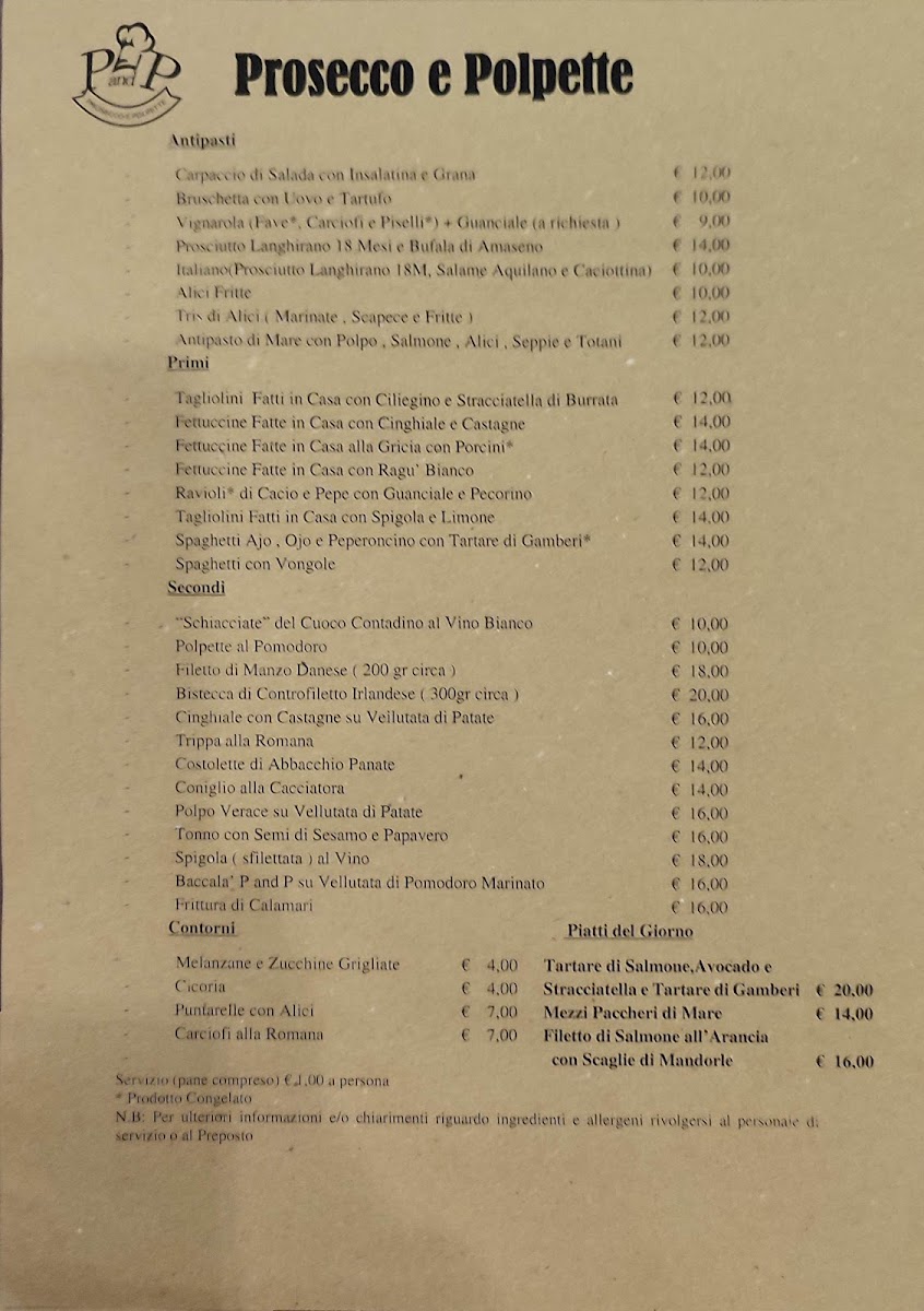 At Prosecco e Polpette Ristorante, located conveniently on Via Appia Pignatelli in Rome, diners are greeted with a delightful blend of traditional Roman cuisine and a warm, friendly atmosphere. The restaurant is acclaimed for its high-quality dishes that celebrate authentic Italian flavors, with highlights ranging from perfectly crafted tonno paninis to exquisite cured meat boards. Guests rave about the beautiful outdoor seating, perfect for family gatherings, along with attentive service that enhances the dining experience. Whether you’re indulging in classic favorites or discovering new tastes, Prosecco e Polpette promises a memorable culinary journey in a charming setting.